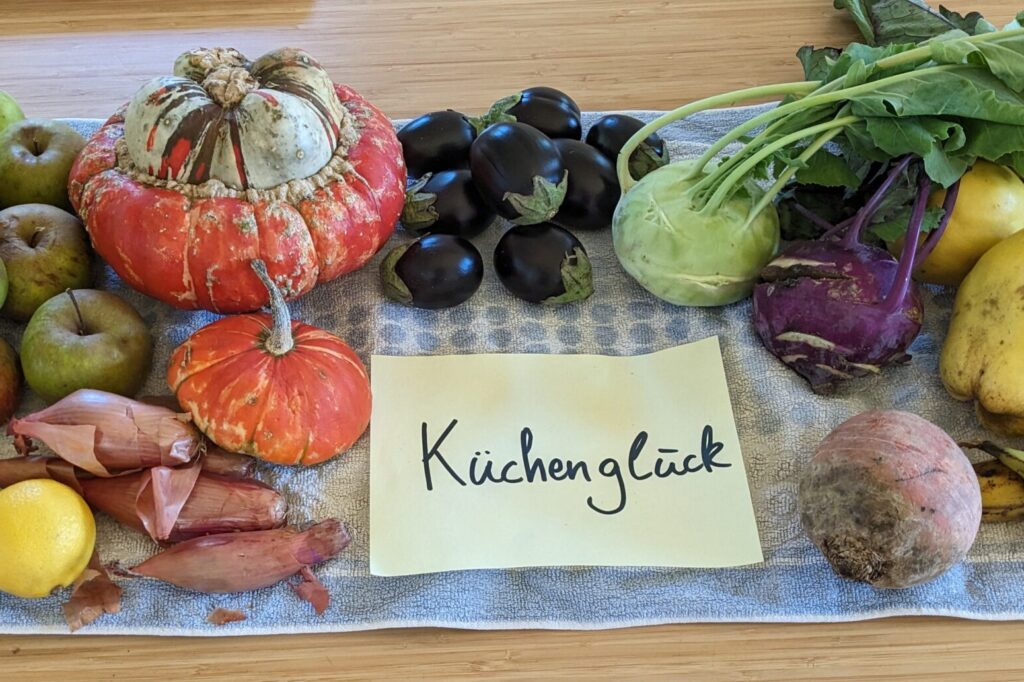 den Blick schweifen lassen und die Formen und Farben der Gemüse betrachten.Das Menü planen und im Geiste schonmal schmecken.